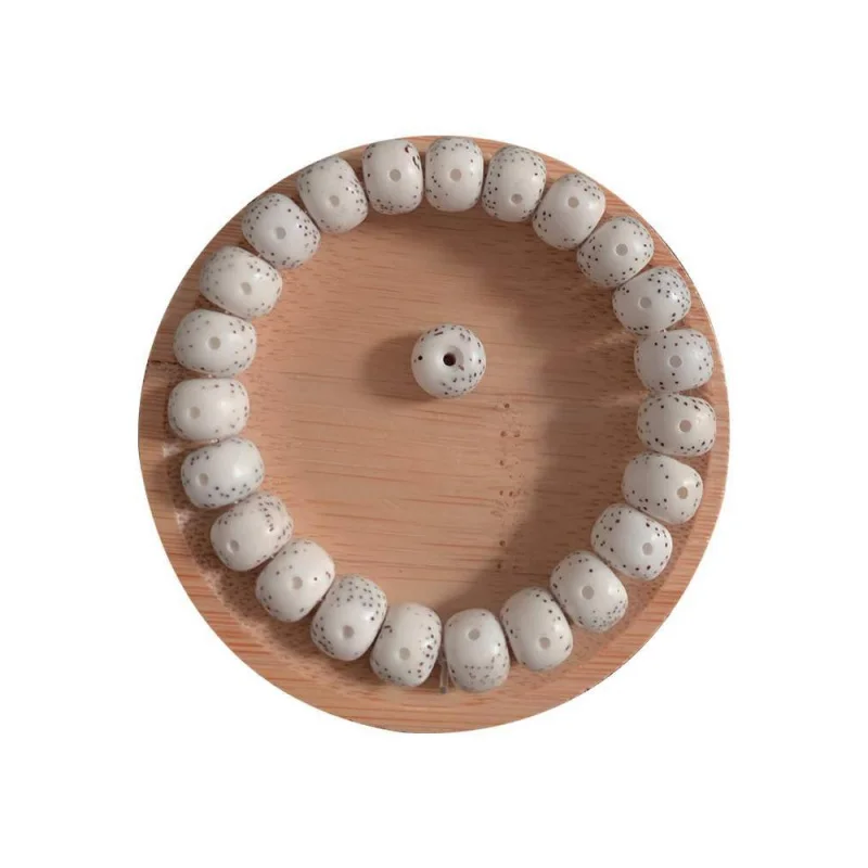 It refers to Bodhi seeds with minimal speckling and creamy clarity—symbolizing purity and poetic serenity.