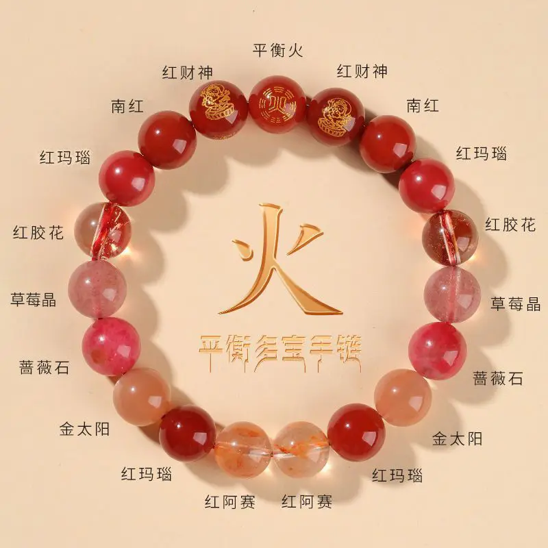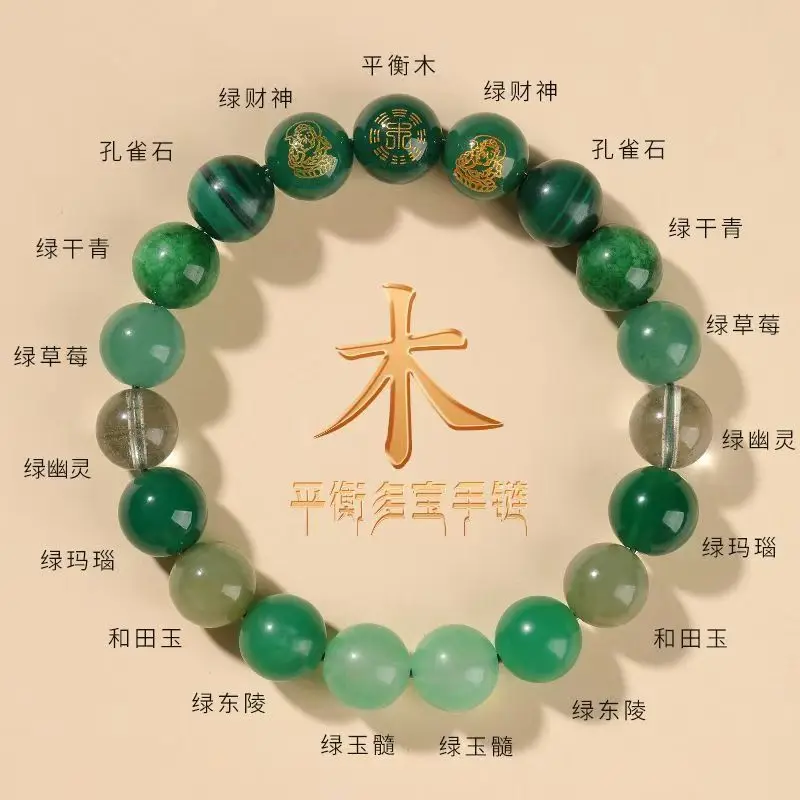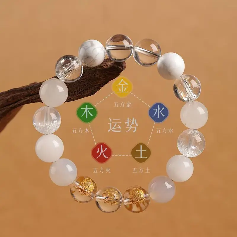 Wangcai Yun Bracelet 2024 Five Elements to make up for the shortage, Jinxi Gold Water Fire Earth Water Wood Bracelet Men’s and Women’s Natural Crystal