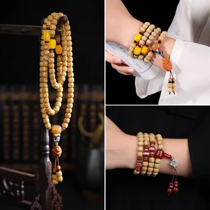 - Bodhi Zi Buddha Bead (菩提子佛头): Represents enlightenment, karmic clarity, and divine protection—often placed as a focal bead in mala strands.