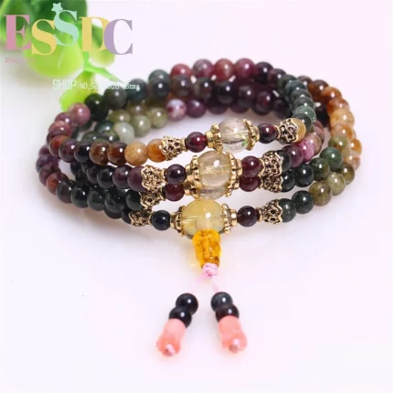 Fashion 108 Natural Tourmaline Strand 5mm-6mm Buddhist Prayer Mala Female Beaded Bracelets Jewelry Gift Wholesale