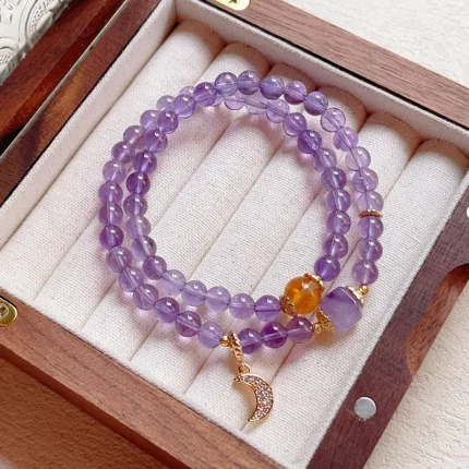 🌙 Product Name Vintage Amethyst Moon Charm Bracelet — Dual Loop Edition ✨ Product Description Elegant and mystical, the Vintage