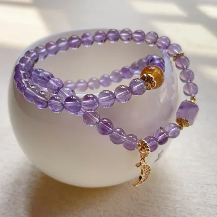 Double-Layered Amethyst Crystal Beaded Bracelet for Women Natural Amethyst Carries Energy for Peace Strengthen Intuitive Powers
