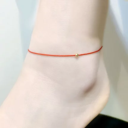 Jīnyǐn Hóngmài(金隐红脉) · Sangbu — NYMPH 18K Gold Ball Anklet | Adjustable Red Rope · Fine Jewelry for Women