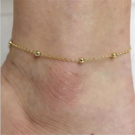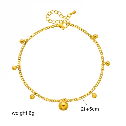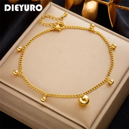 Jīnguāng Liánzhū(金光链珠) · Sangbu — DIEYURO 316L Stainless Steel Anklet | Gold-Tone Round Beads · Trendy Leg Chain Jewelry for Women