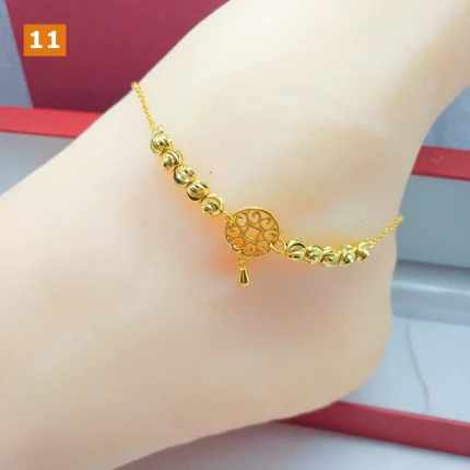 Jīnguāng Liányǐng(金光链影) · Sangbu — 24K Gold-Plated Anklet | Single & Double Layer · Tassel Pendant · Vintage Beach Jewelry for Women