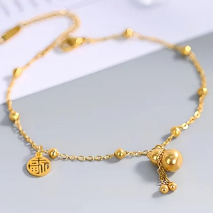 Húlú Jīnguāng(葫芦金光) · Sangbu — Lucky Gourd Tassel Anklet | Titanium Steel · Hypoallergenic · Minimalist Jewelry for Women
