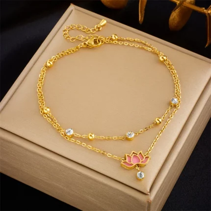 Liánhuā Jīnguāng(莲花金光) · Sangbu — Lotus Pendant Anklet | Titanium Stainless Steel · Boho Yoga-Inspired Jewelry for Women