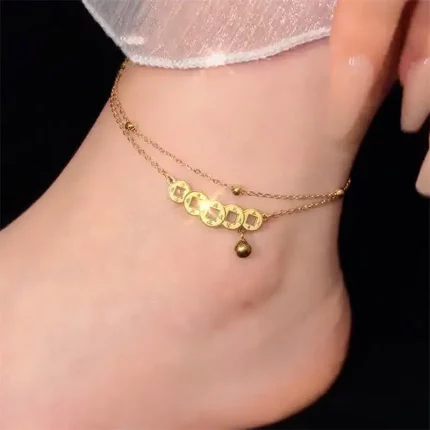 Wǔdì Fúlián(五帝福链) · Sangbu — Five Emperors Coin Anklet | Double-Layer Chain · Adjustable · Wealth & Safety Charm Jewelry for Women
