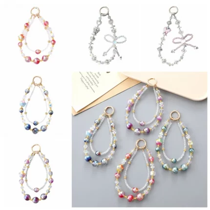 Tiánzhū Huāliàn(甜珠花链) · NoEnName_Null — Sweet Bowknot Beaded Phone Chain | Colorful Acrylic Mobile Strap · Universal Anti-Loss Keychain & Bag Pendant