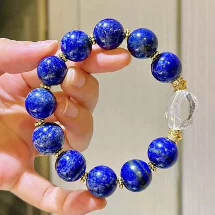 曜蓝晶萃·Duobao Luxe Bracelet — 14mm Lapis Lazuli & White Crystal | Handmade European-American Style · Guangdong Origin