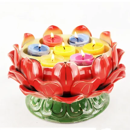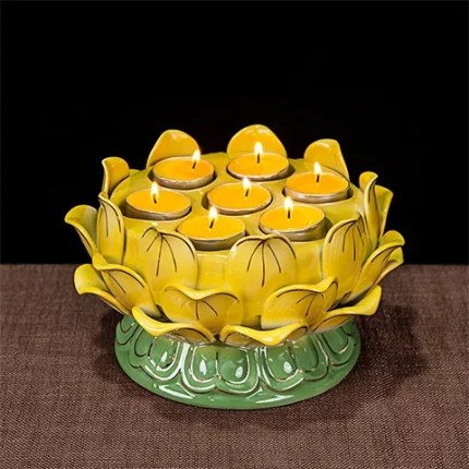 Yángyǐn Fóhuā(阳隐佛花) · Sangbu — Tall Lotus Butter Lamp Holder | Multi-Color Resin Candlestick for Buddhist Altars & Ghee Candle Rituals