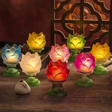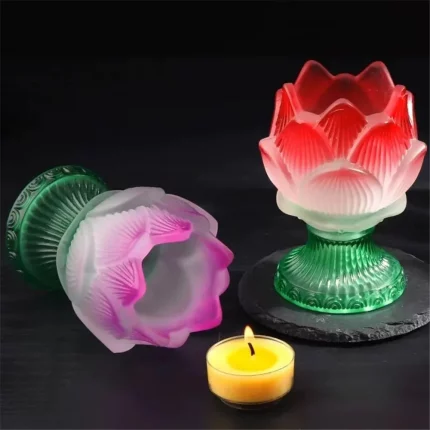 Yángyǐn Liánzhào(阳隐莲照) · Sangbu — Simulated Glass Lotus Lantern | Buddhist Temple Candlestick for Auspicious Prayer & Home Decoration