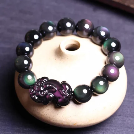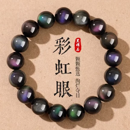 澈曜虹瞳·IrisFortis — Rainbow Eye Obsidian Bracelet | 12mm Strand · Unisex Amulet Jewelry