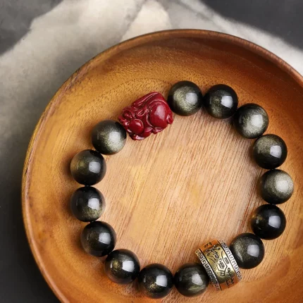 曜隐辰灵·ObsiDraco — 2025 Zodiac Dragon Gold Obsidian Bracelet | Birth-Year Protection · Lovers’ Religious Jewelry