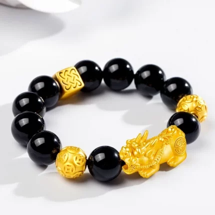 曜璟瑞辰·ObsiRegius — AU999 Gold × Obsidian Pixiu Bracelet | Premium Zodiac Wealth · Unisex Trendy Jewelry
