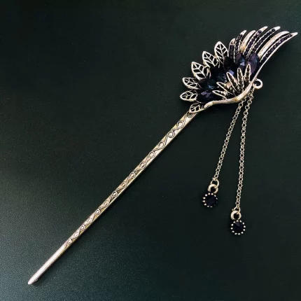 Fèngyǐn Liányǐng(凤隐链影) · Sangbu — Phoenix Plume Tassel Hair Stick | Crystal Feather Chopstick · Vintage Fairy Hair Jewelry for Women