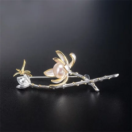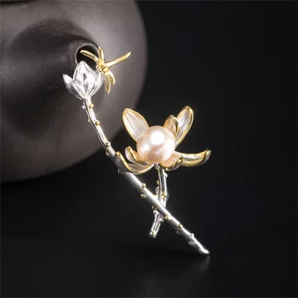 Héyǐn Lóngzhū(荷隐龙珠) · Sangbu — Lotus Dragonfly Brooch | S925 Sterling Silver · 9mm Natural Pearl · Chinese Style Pin for Women & Men