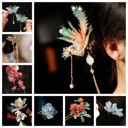 Fèngyǐn Yùhuā(凤隐玉华) · Sangbu — Handmade Vintage U-Hairpins | Phoenix · Lily · Rose · Fish Motifs · Jade & Pearl Hairwear for Women