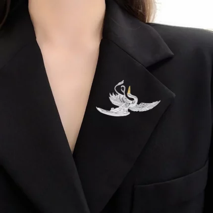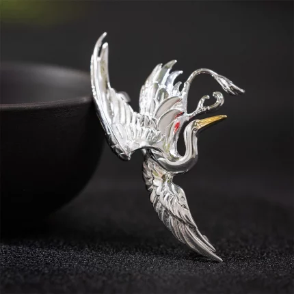 Fēiyǐn Yùhé(飞隐玉鹤) · Sangbu — S925 Sterling Silver Crane Brooch | Original Chinese Style Pin · Fine Charm Jewelry for Women & Men