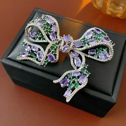 Fǎyǐn Lǐzhū(法隐礼珠) · Sangbu — Sparkling Bow Brooch | DREJEW French Hollow-Out Design · Zircon Luxury Pin for Women