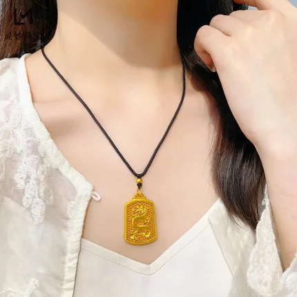 Lóngfèng Róngyù(龙凤荣玉) · Adorn — 24K Gold Dragon-Phoenix Pendant | AU999 Pure Gold · 3D Intertwined Design · Ruby Eyes for Perfect Union