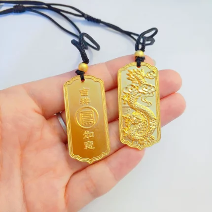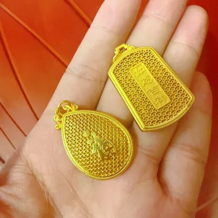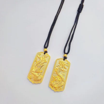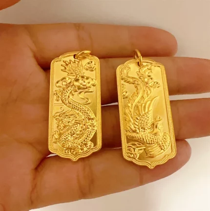 Lóngfèng Jīnguāng(龙凤金光) · Adorn — AU999 24K Gold Dragon-Phoenix Pendant | Chiseled Blessing Motif · GDTC Certified Love Talisman