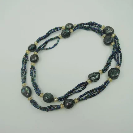 Hēizhēn Liánhuā(黑珍莲华) · YUEMOON — Long Freshwater Pearl Necklace | Black Nearround Pearls · Crystal Beads · Elegant Party Jewelry Piece