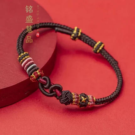 Hēijīn Wùkōng(黑金悟空) · UMQ — Black Myth Wukong Bracelet | Eight-Strand Handwoven Rope · Red Thread · Semi-Finished Gold Jewelry Accent