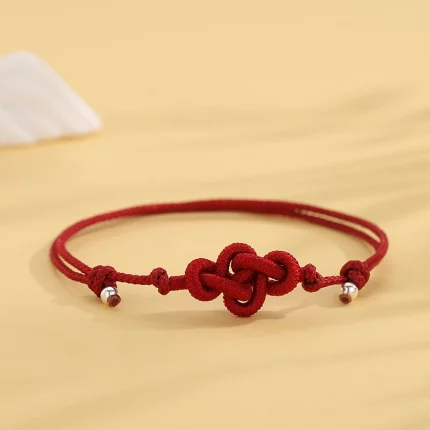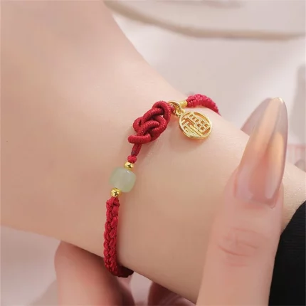 Fúlián Qíngjié(福莲情结) · Rinhoo — Auspicious Knot Coin Bracelet | Traditional Lotus · Red Braided Rope · Friendship Jewelry Gift