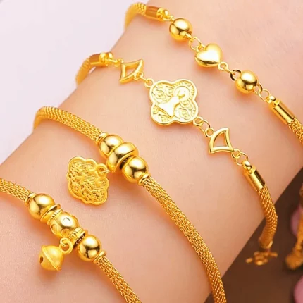 Fashion Gold color Bracelet for Women Little Bell Lady Bracelet Gold color Bangle Wedding Engagement Not Fade Fine Jewelry Gifts