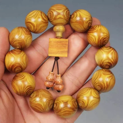 Handcrafted from Sichuan-sourced Golden Phoebe (Jinsi Nanmu) and Yin Chen wood, the 楠澜契纹·Rippleheart bracelet features a rare water ripple grain and gentian-style patterning. Designed for unisex wearers and couple gifting, this bracelet blends classic Buddhist symbolism, Wenwan-grade woodwork, and emotional elegance into a tactile strand of spiritual resonance.