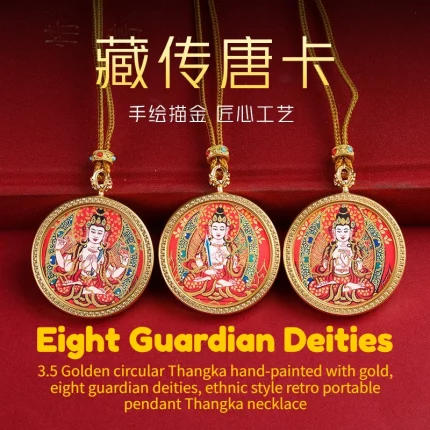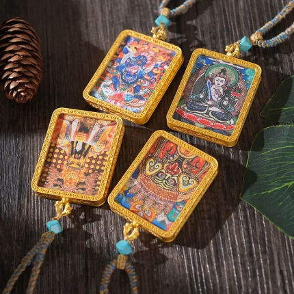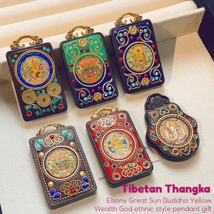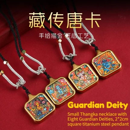 Zakilam Benming · Adorn — Tibetan Thangka Pendant Necklace | Eight Guardian Zodiac Buddhas · Black Sandalwood · Hand-woven Rope · Unisex Peace Amulet Jewelry