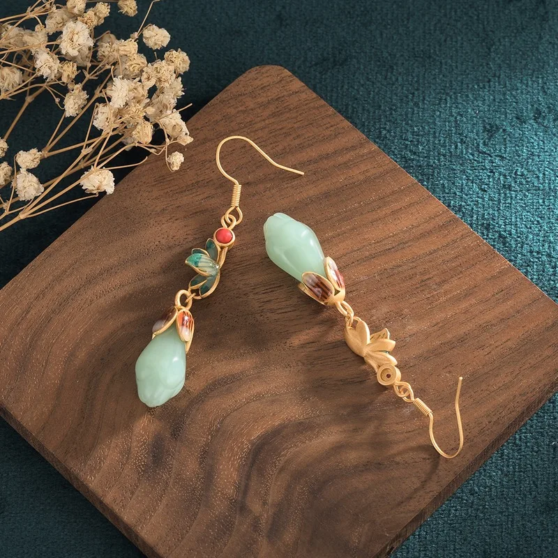 These earrings channel Chinese floral elegance and poetic symbolism, offering: